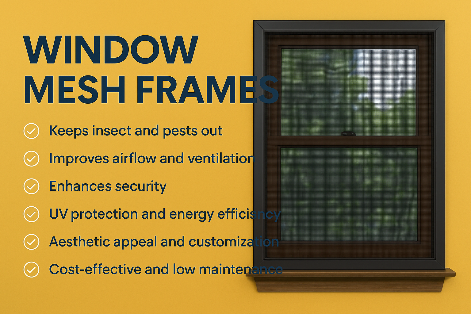 The mesh available in stainless steel or high-quality fiberglass prevents mosquitoes and insects from entering while allowing fresh air and natural light to flow freely.